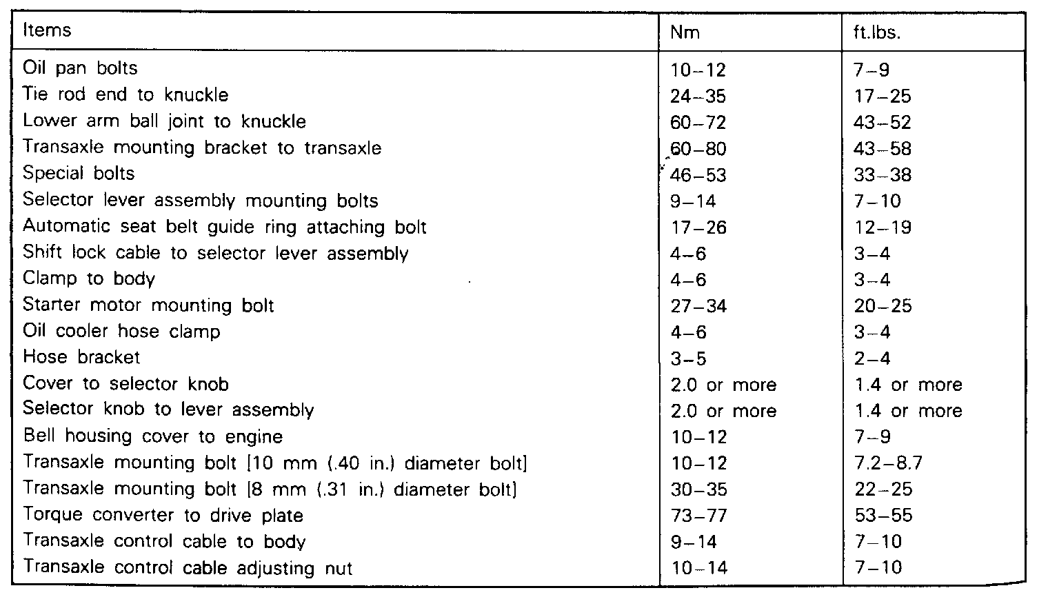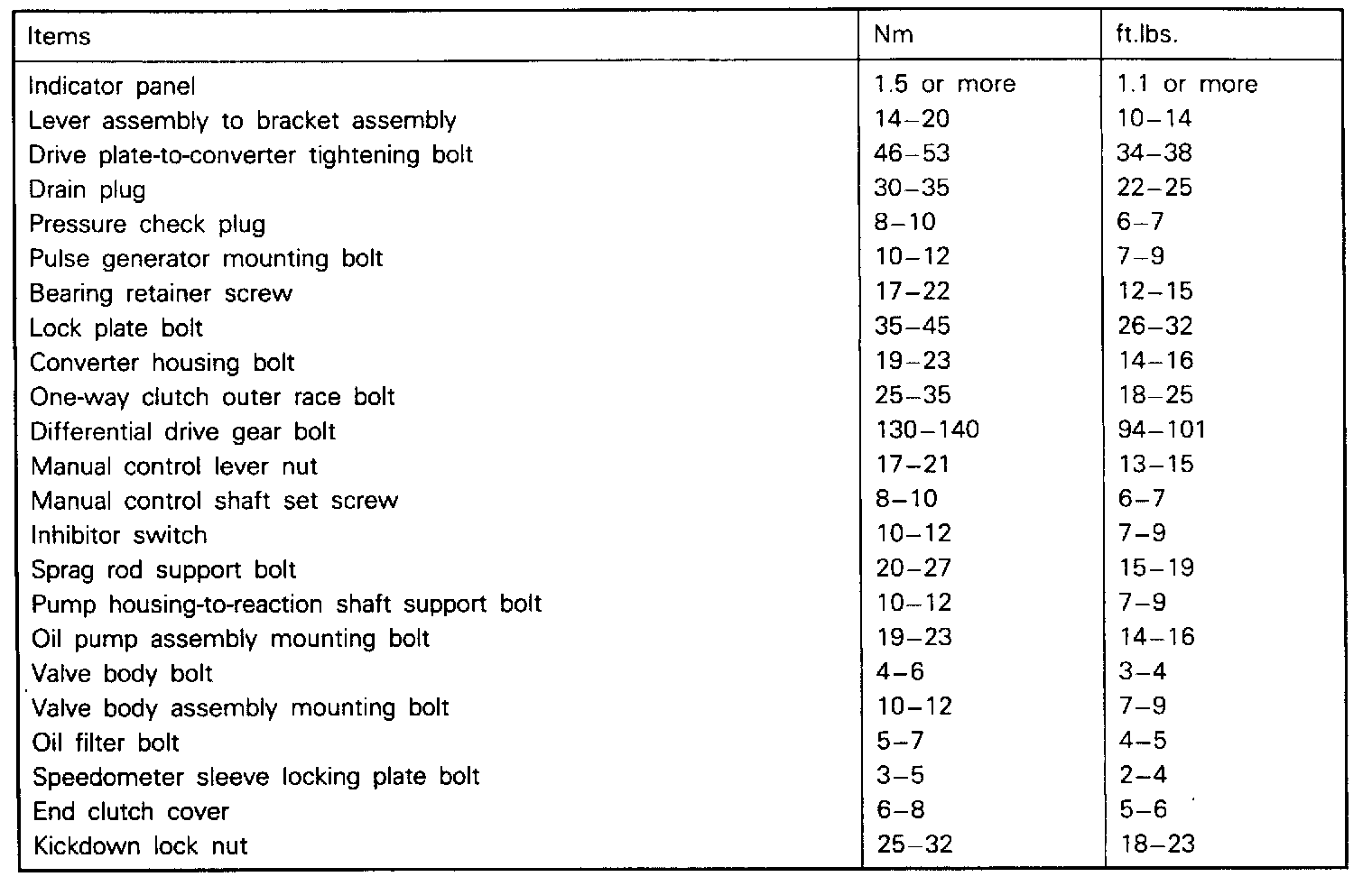 Torque Specifications: