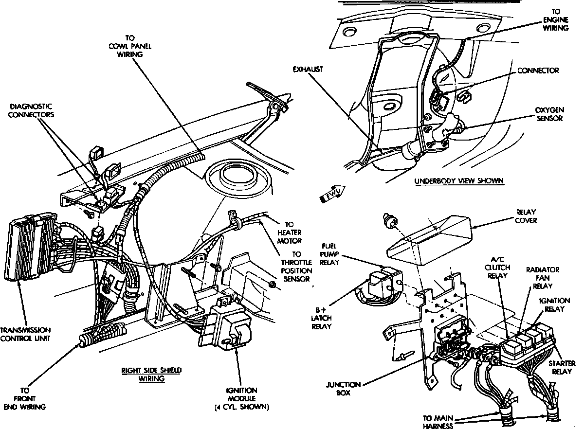 Engine Compartment Components, Right Side.: