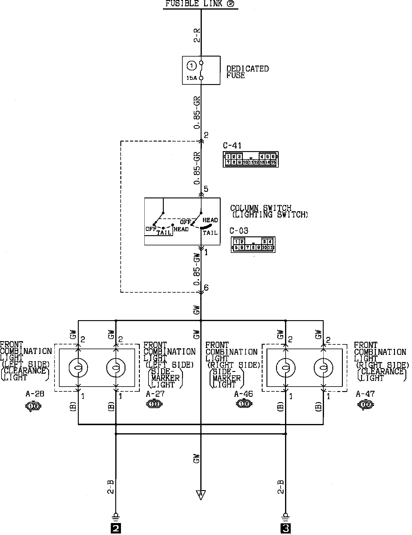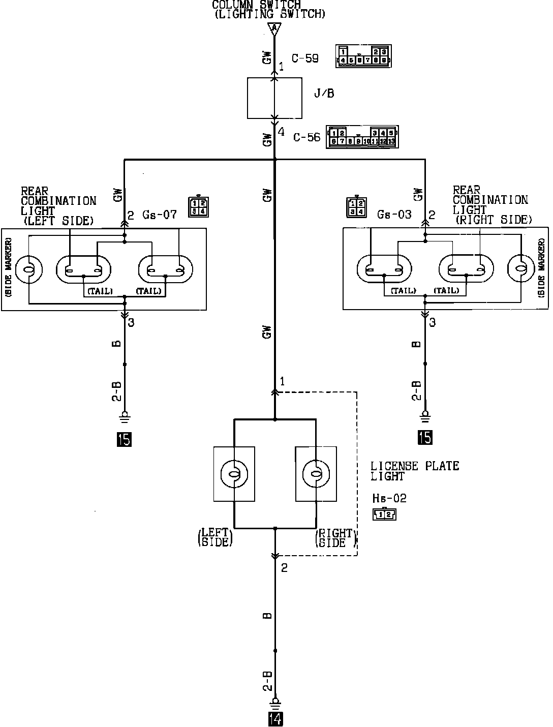 Clearance, License Plate, Side Marker & Tail Lights. Sedan: