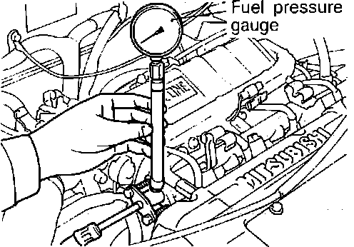 3. Using the fuel pressure gauge adapter (MD998742-01) or equivalent, install the fuel-pressure gauge to the delivery pipe (fuel rail).