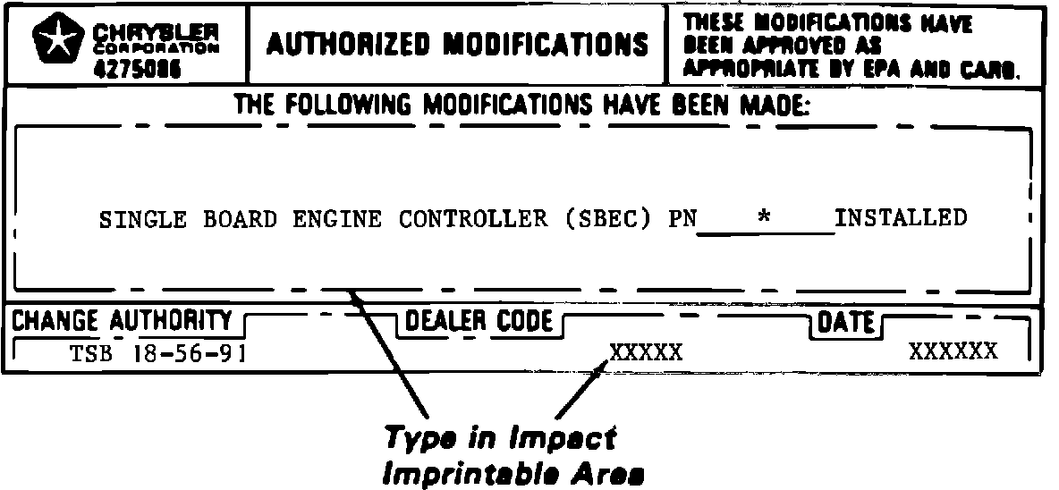 (1991 vehicles built after MDH 10-08-XX are equipped with a SBEC II. These vehicles can be identified by an eight in the twelfth position of the VIN.)