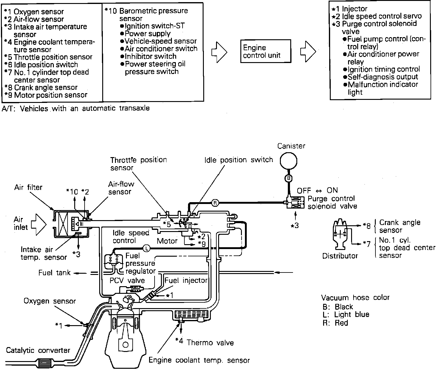 The ECI system is made up of an electronic control unit (ECU), various sensors and output devices. This system controls engine operation (i.e. A/F mixture and ignition timing) to reduce pollutants while maintaining optimum driveability conditions and reducing fuel consumption.