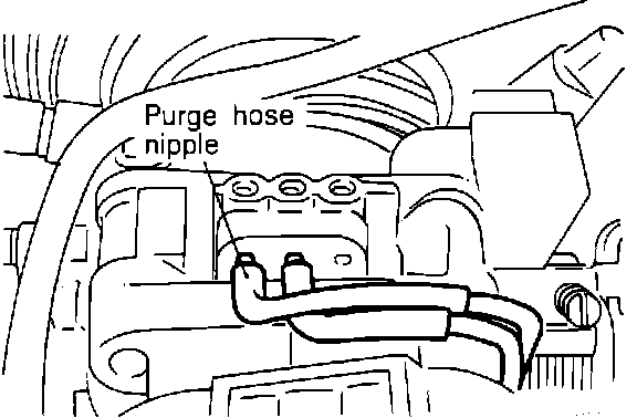 This check is to be performed with the engine coolant temperature at 176 - 205°F (80 - 95°C).Purge Vacuum Nipple Location: