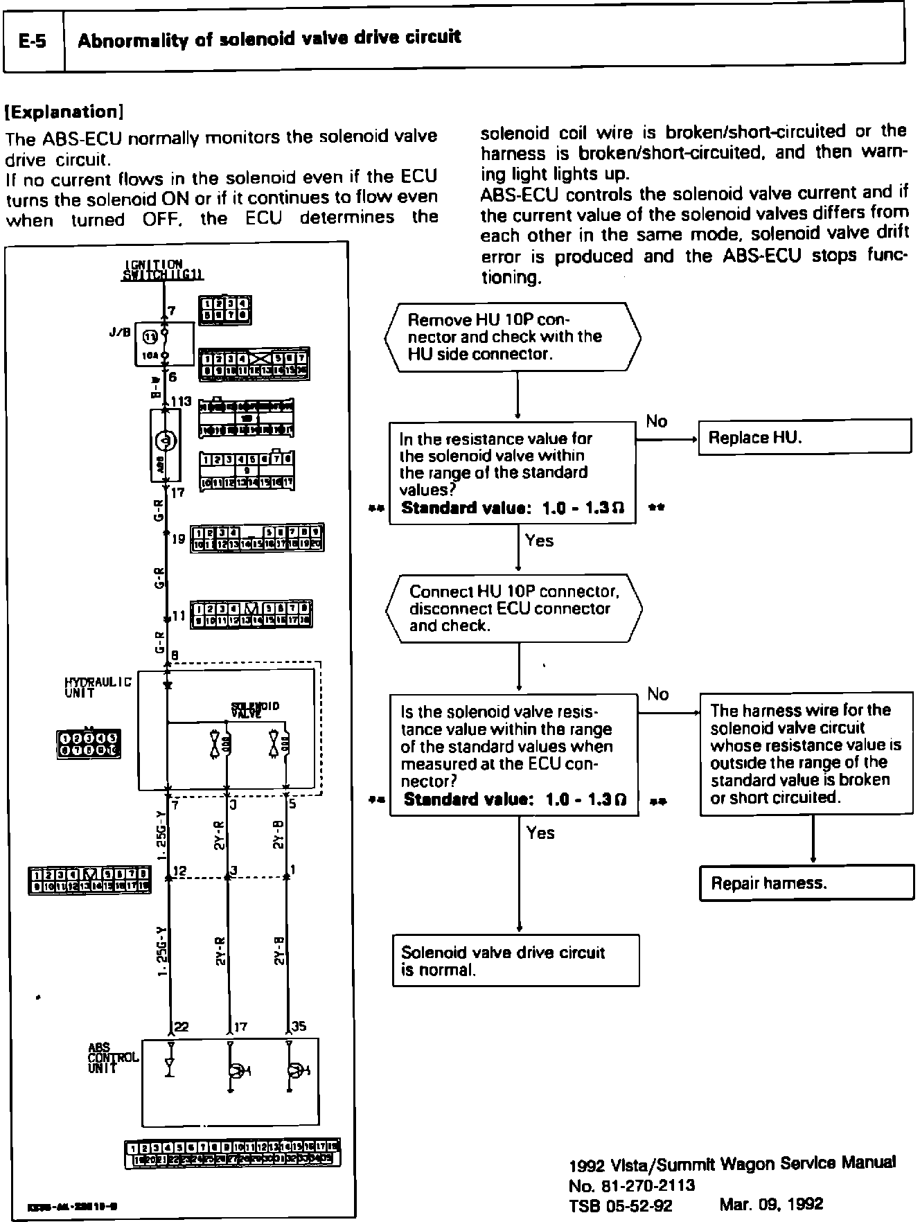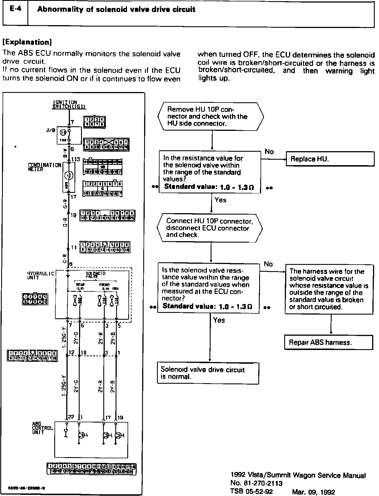 The ABS troubleshooting guide found in the listed manual has a Standard Value that is incorrect. The corrected value is 1.0 - 1.3 ohms, please insert the corrected page in the manual. The revisions are printed in red and highlighted with ** asterisks **.