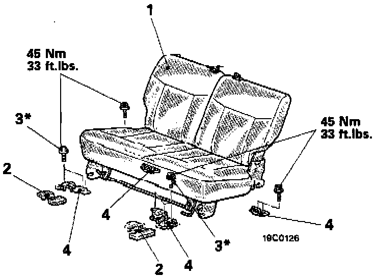 NOTE: After provisionally tightening the bolts marked with a * in all locations. tighten them to the specified torque.