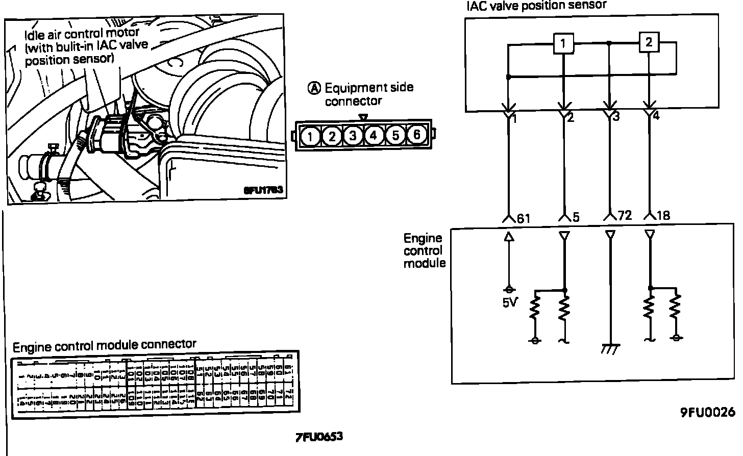 The Idle Air Control Valve Position Sensor (IAC) converts the position changes of the idle valve into pulse signals.