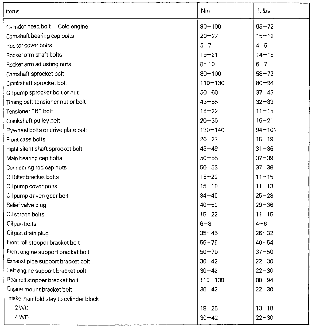 Tightening Specifications