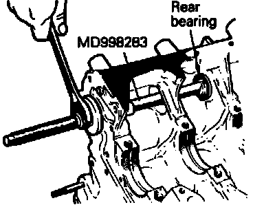 6. Using silent shaft bearing puller MD998283 or equivalent, remove silent shaft rear bearings as shown.