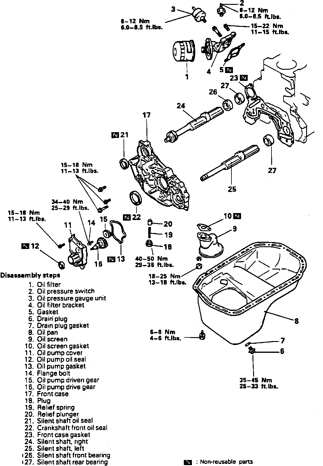 Disassemble front case, oil pump and silent shaft in numbered sequence, noting the following: