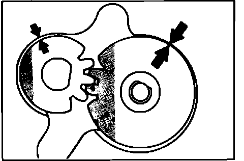 a. Install oil pump gears in front case and check tip clearance in location shown.