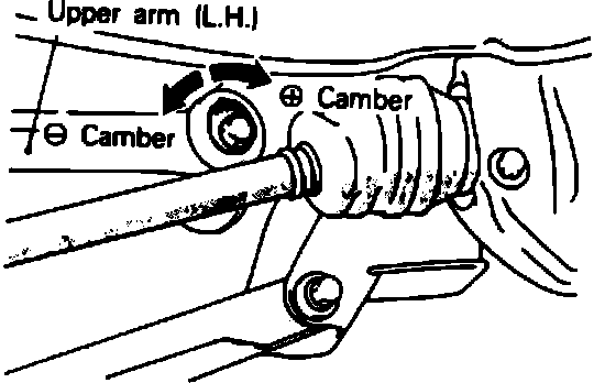 2. If camber is not within specifications, adjust by moving the mounting bolt located on the crossmember side of the arm.