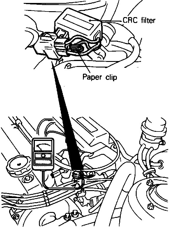3. Insert a paper clip into the engine speed detection connector and connect a tachometer to the clip.