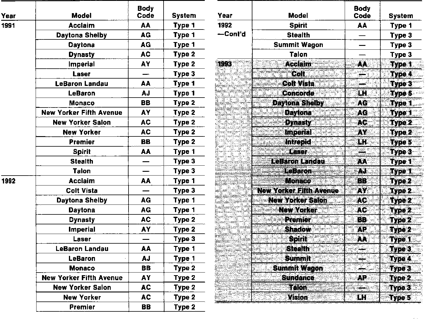 Use this chart to determine the brake system type by model, and year.
