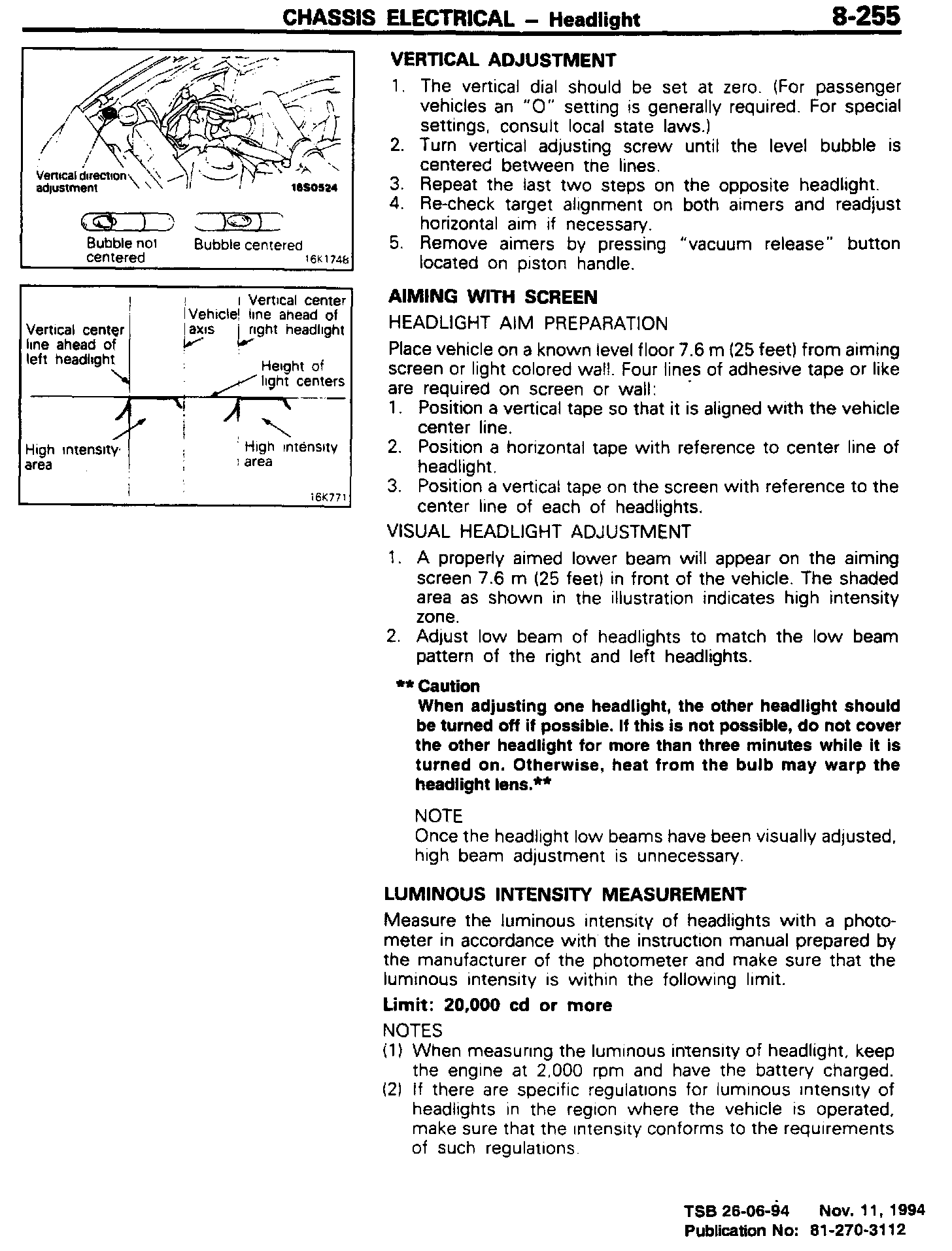 Caution Note Added to Headlamp Adjustment Procedure.