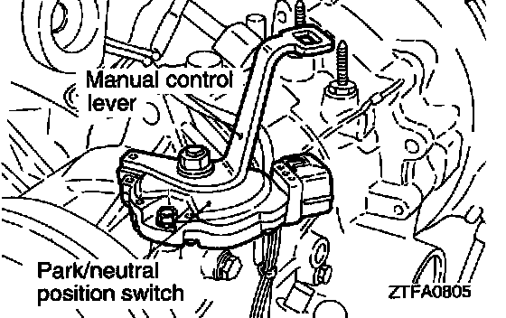 75. Install the [1][2]park/neutral position switch and manual control lever, and tighten the manual control lever nut to the specified torque.