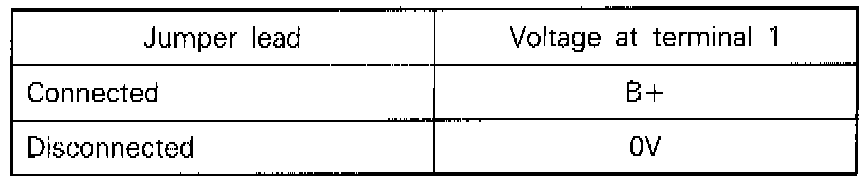 4. Check the voltage at MFI relay terminal (1) while connecting and disconnecting the jumper lead at the battery (-)terminal.