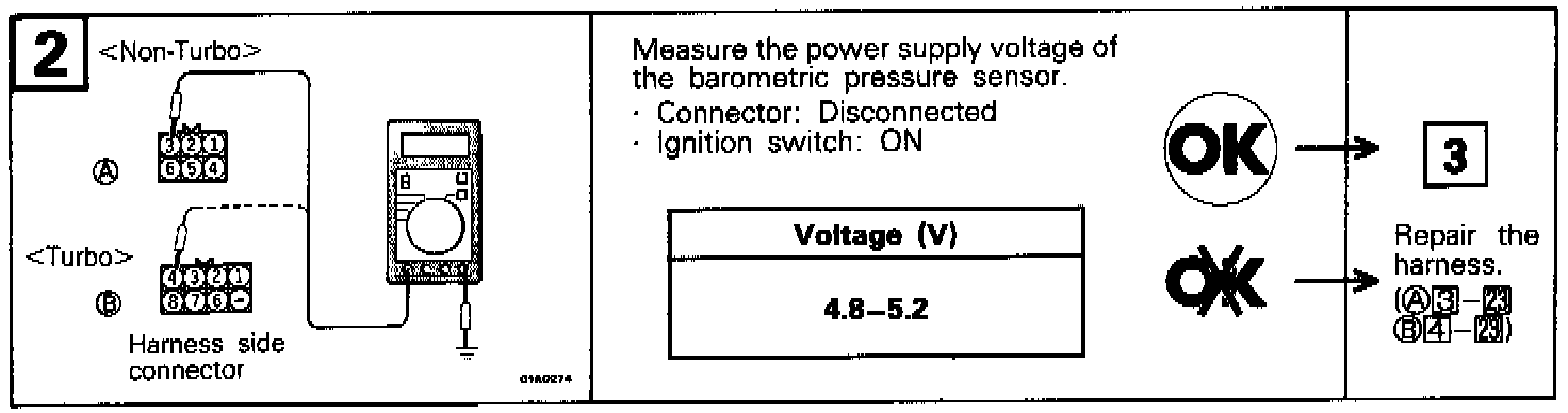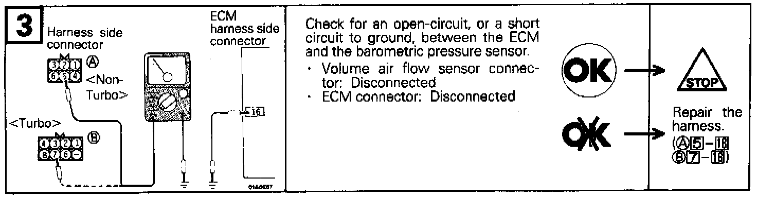 When troubled, it controls the fuel injection amount with the barometric pressure regarded as 760 mm Hg. The driveability may become poor at high altitudes, but the trouble can hardly be felt at low altitudes.