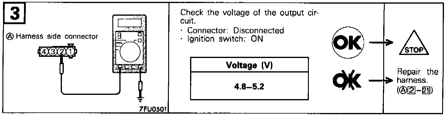 Hint 5: If the engine can be run at idle even though the crankshaft position sensor reading is out of specification, troubles are often in other than the crankshaft position sensor. [Examples]