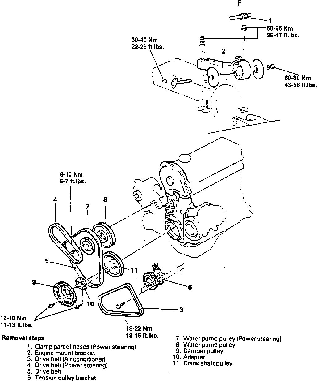4. Before removing water pump drive belt, loosen water pump pulley installation bolt.