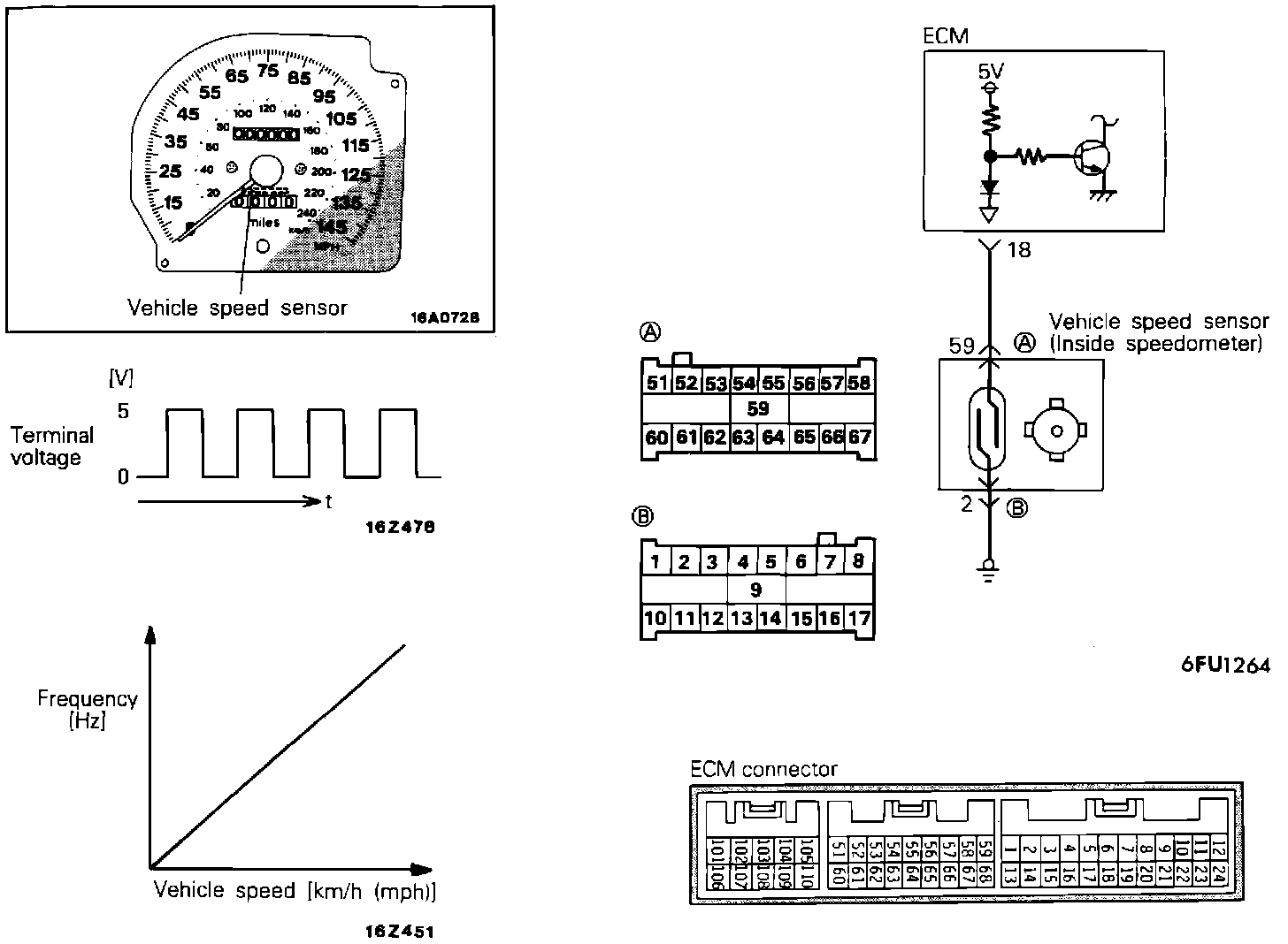 5. Using a voltmeter with a minimum impedance of 10 Meg. ohms, measure the voltage at the speed sensor harness connector terminal 59.