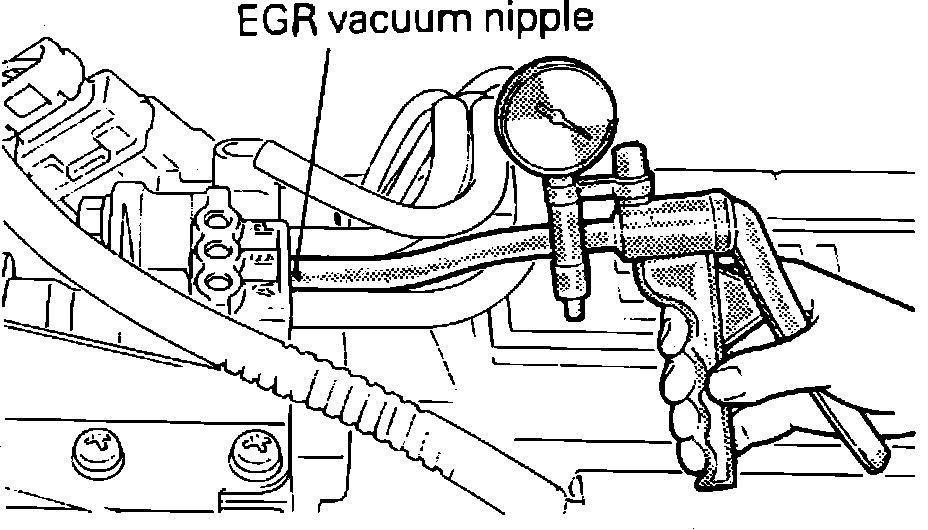 2. Start the engine. Gradually increase the engine rpm. Vacuum from the EGR nipple should increase proportionately with the engine rpm.