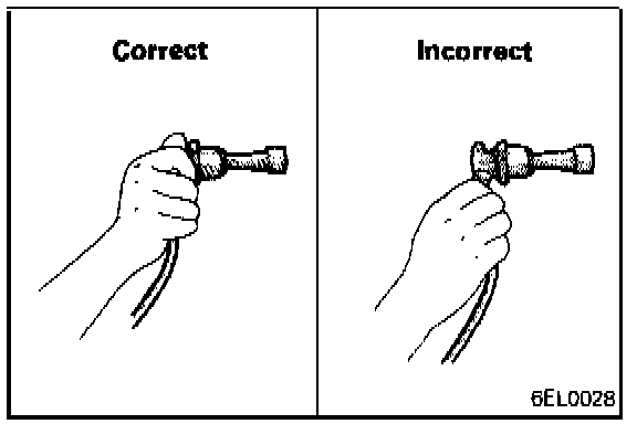 Cautions: Remove cables by pulling on the spark plug boot. If the spark plug cable is removed by pulling on the cable, it may be damaged.