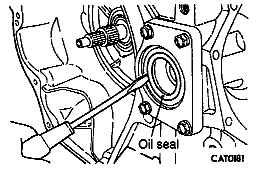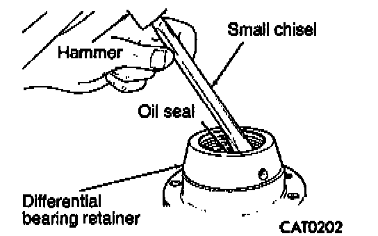 16. Remove oil seal from differential bearing retainer with a small chisel and hammer.