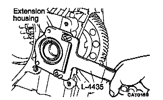 8. Loosen extension housing with Remover L-4435. Walk housing out of transaxle case using special tool.