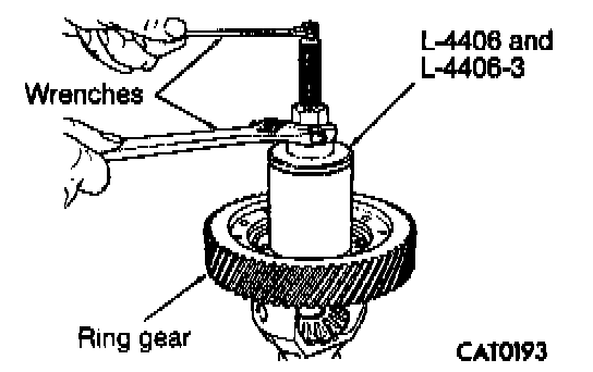 11. Remove differential bearing from ring gear side with Bearing and Gear remover L-4406 and L4406-3.