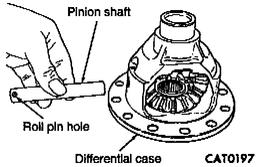 13. Remove pinion shaft roll pin by tapping out with a hammer and steel punch.