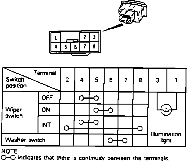 Rear Wiper/Washer Switch Continuity Test