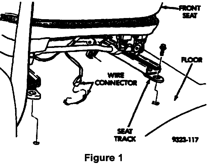 1. Position the driver's seat far enough forward to gain access to the rear mounting bolts on the floor.2. Remove the four (4) bolts that attach the seat to the floor (Figure 1).