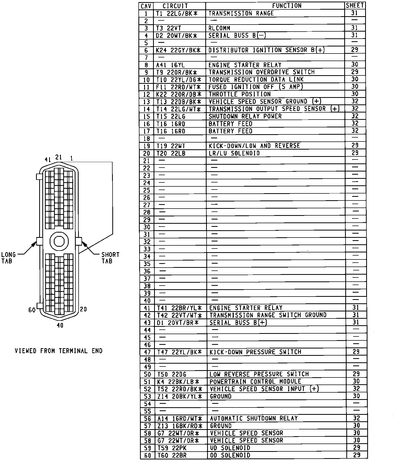 Transmission Control Module Connector: