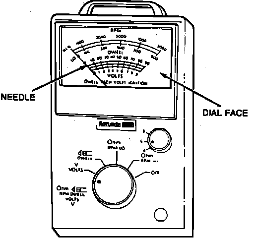 Like digital meters, analog Volt/Ohm Meters (VOM's), can be used to measure and compare actual values with expected circuit values.