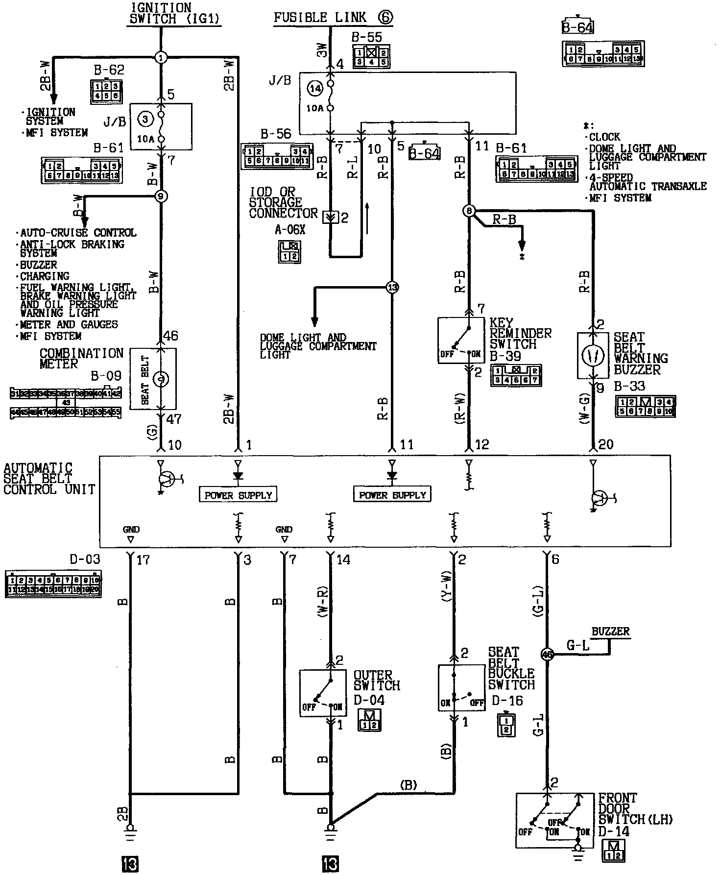 Automatic Seat Belt Circuit <Vehicles For U.S.> (Part 1 Of 2):
