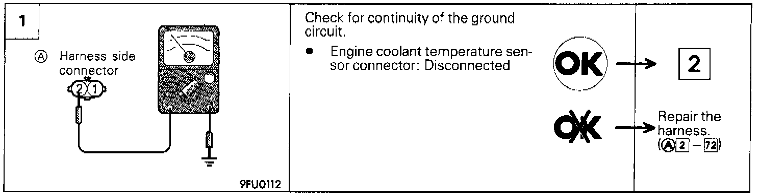 If the fast idle speed is inadequate or the engine emits dark smoke during engine warm up operation, the engine coolant temperature sensor may be faulty.