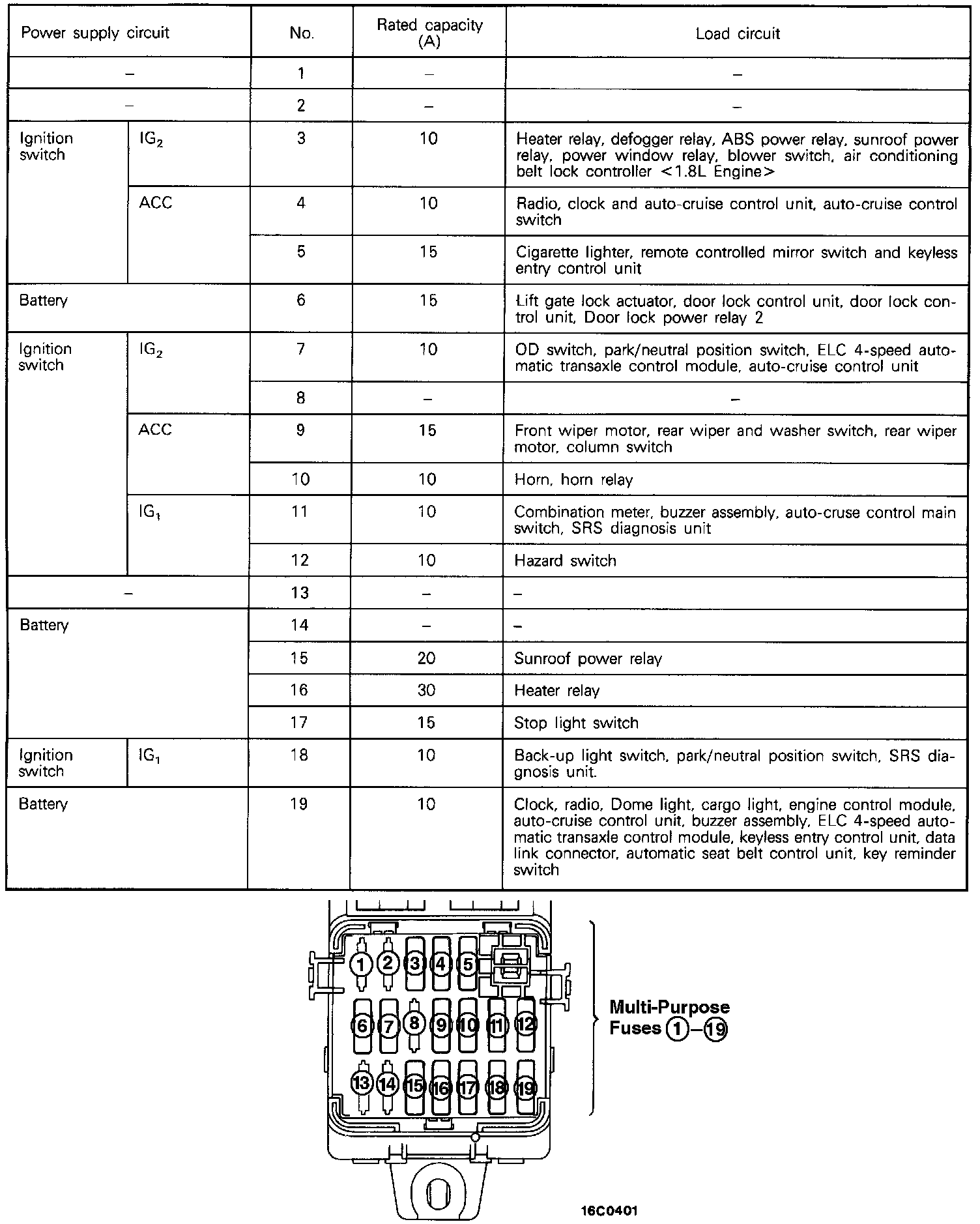 Multi-Purpose Fuses (In Junction Block):