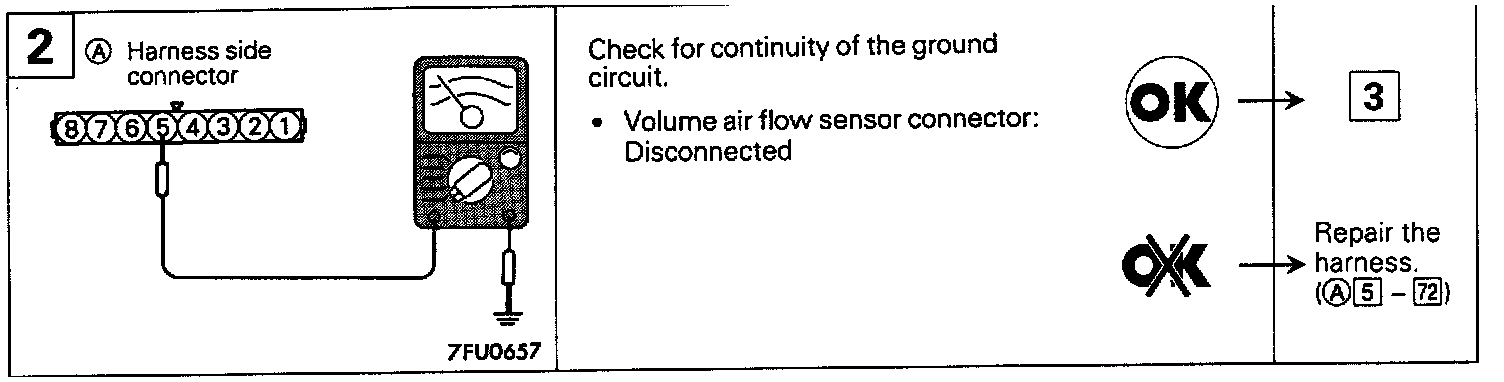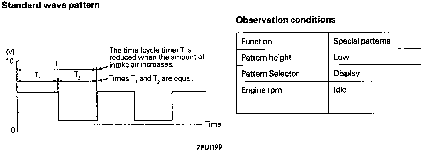 Hint 3: If the engine can be run idle even though the volume air flow sensor output frequency is out of specification, troubles are often found in other than the volume air flow sensor itself.