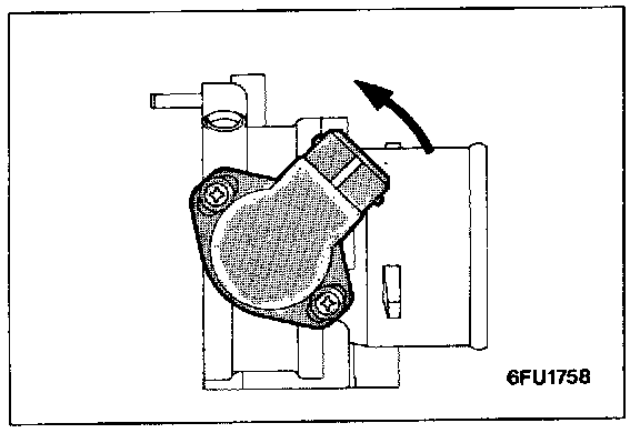 4 Loosen the throttle position sensor mounting bolt; then turn the throttle position sensor body fully clockwise.