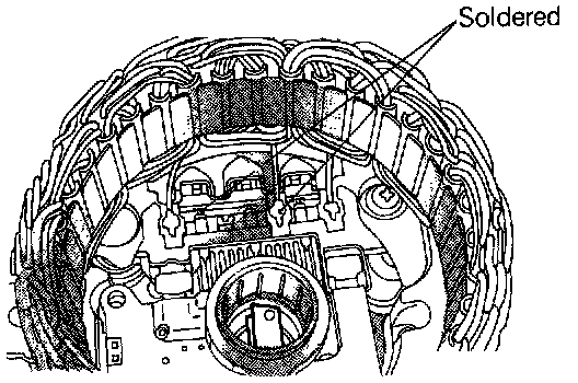 1. When removing stator, unsolder three stator leads soldered to main diodes on rectifier.