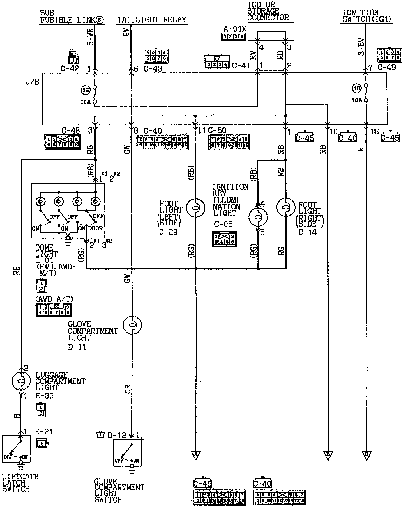 Dome Light, Ignition Key Illumination Light, Foot Light, Glove Compartment Light, Door-Ajar Warning Light, And Luggage Compartment Light Circuit (Part 2 Of 2):