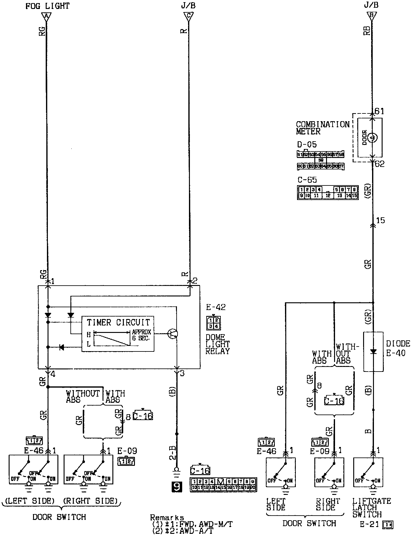 Dome Light, Ignition Key Illumination Light, Foot Light, Glove Compartment Light, Door-Ajar Warning Light, And Luggage Compartment Light Circuit (Part 1 Of 2):