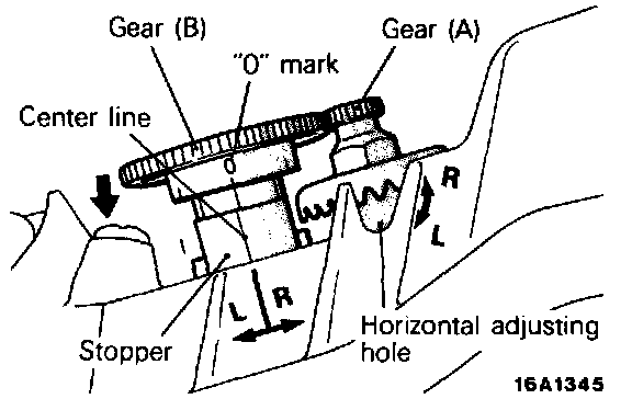 c. Align the "0" mark on gear (B) with the center line of the stopper.