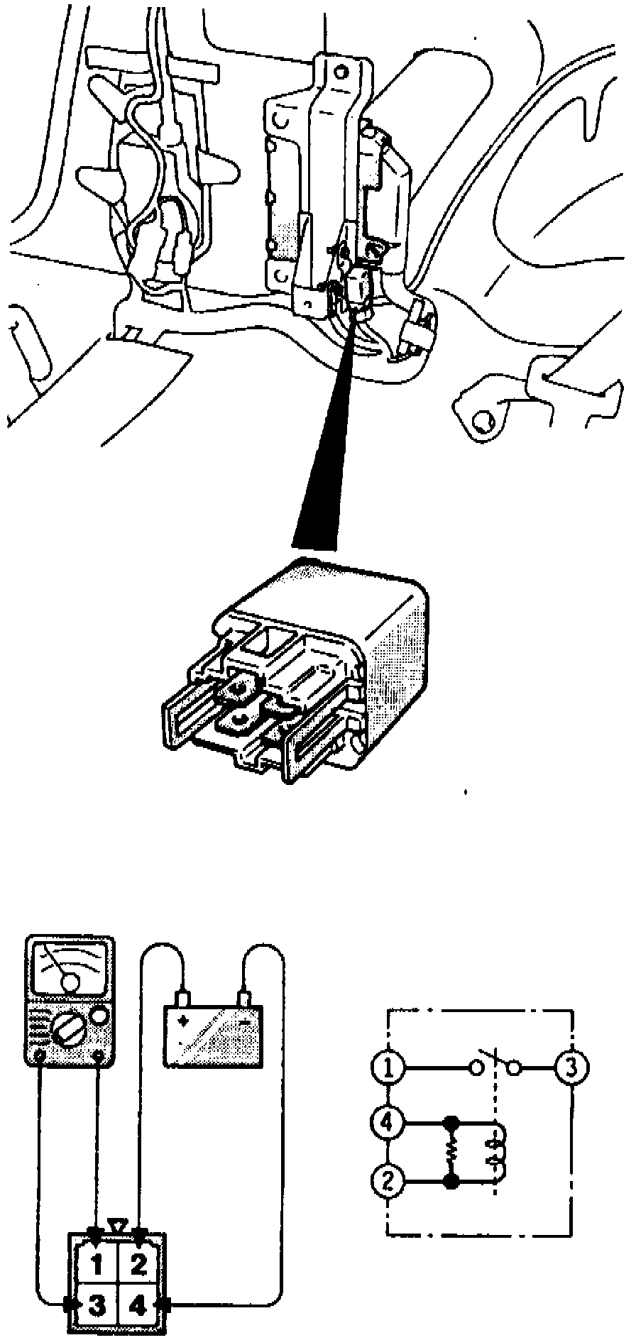 1. Remove ABS power relay from ABS control unit bracket.Fig 72 ABS Power Relay Inspection: