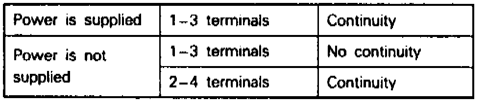 2. Connect terminal 2 of the power relay to battery voltage, then check continuity between terminals as shown, with terminal 4 grounded.