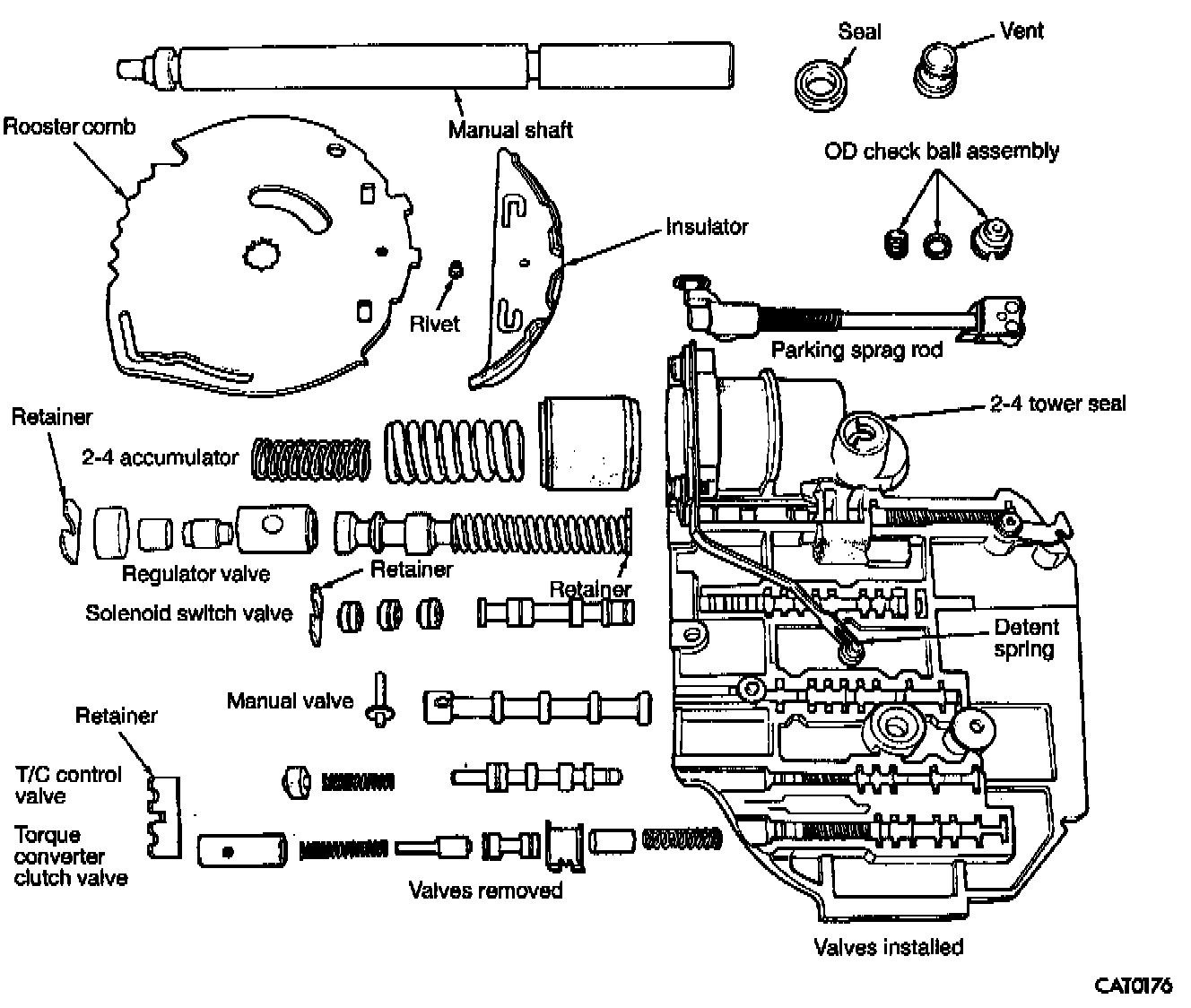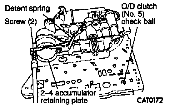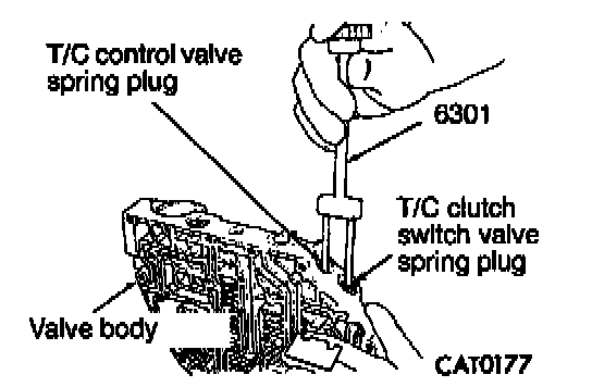 2. Install torque converter control valve and torque converter clutch valve. Install dual retainer plate with Installer/Remover 6301.