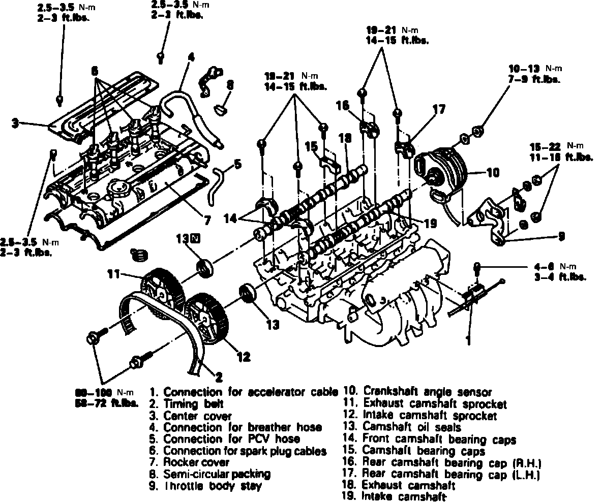 2. When installing camshaft bearing caps, tighten evenly, in two or three steps.