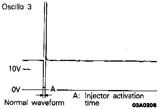 2. Connect the probe to the oscilloscope pick-up point 2 as shown in the circuit diagram, and check the waveform of each injector.