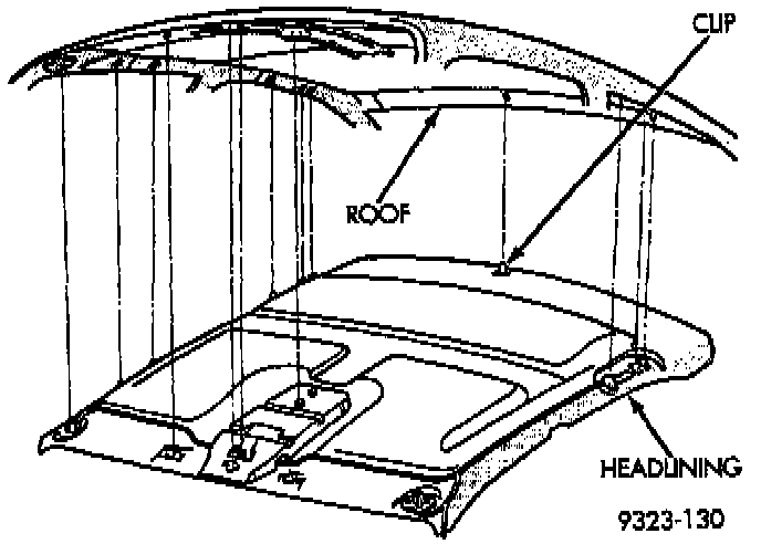 1. Place headlining in proper position in vehicle.