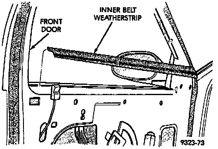 2. Push inner belt weatherstrip downward to en gage channel to top of inner door panel.